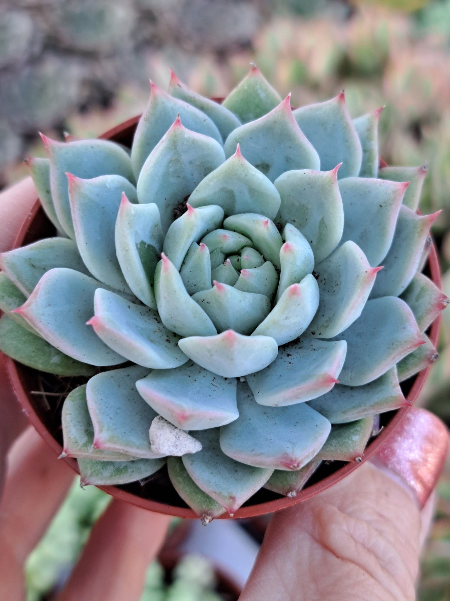 Echeveria 'Tippy' is a lovely pale colour rosette, ideal to give some contrast to other succuents in your collection. It will with time offset freely.